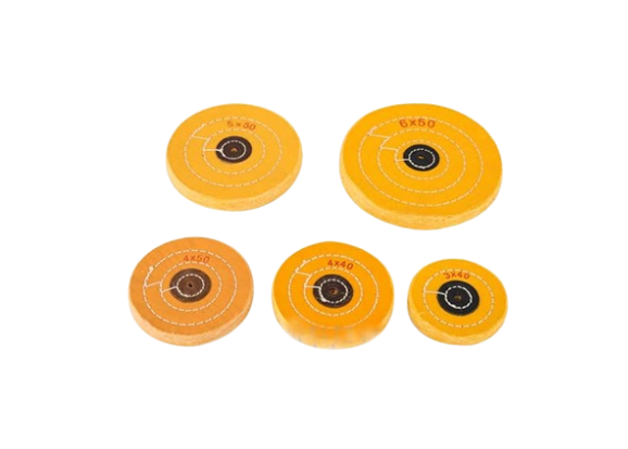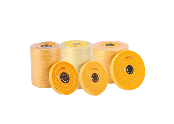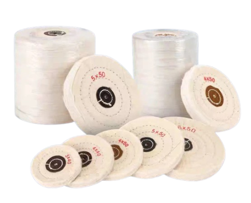 5. Formed by sewing layers of pure cotton cloth, they are universal buffs for common polishing machines to polish the flat surface. High luster finish, good retention of polishing compounds and service life are their advantages.
