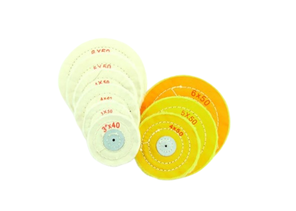 5. Formed by sewing layers of pure cotton cloth, they are universal buffs for common polishing machines to polish the flat surface. High luster finish, good retention of polishing compounds and service life are their advantages.